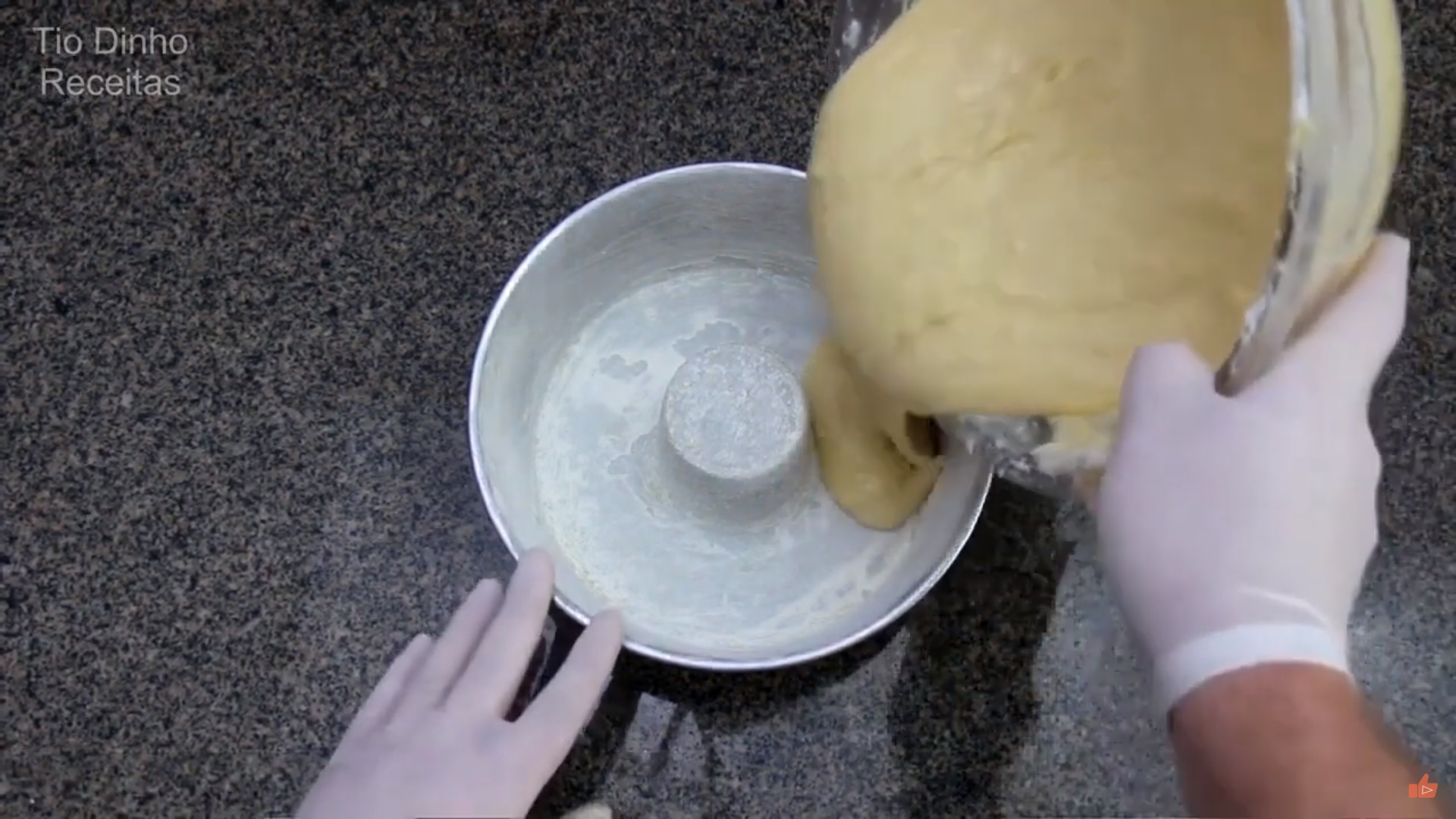- Adicione o fermento, misture até a massa ficar homogênea e transfira para uma forma untada com manteiga ou margarina e farinha.