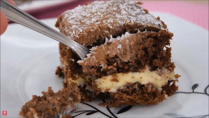 - Despeje a massa em uma forma untada e enfarinhada com farinha de trigo e chocolate em pó. Em seguida leve ao forno pré-aquecido a 180º₢ e asse a massa por aproximadamente 30 minutos. Aguarde esfriar, corte a massa ao meio e umedeça com um pouco leite.