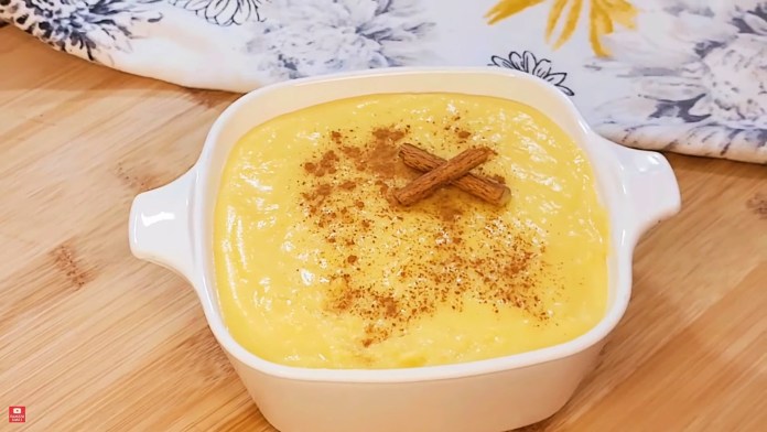 - Desligue o fogo e transfira a mistura cremosa para um recipiente ou travessa de sua preferência e polvilhe canela em pó por cima a gosto.