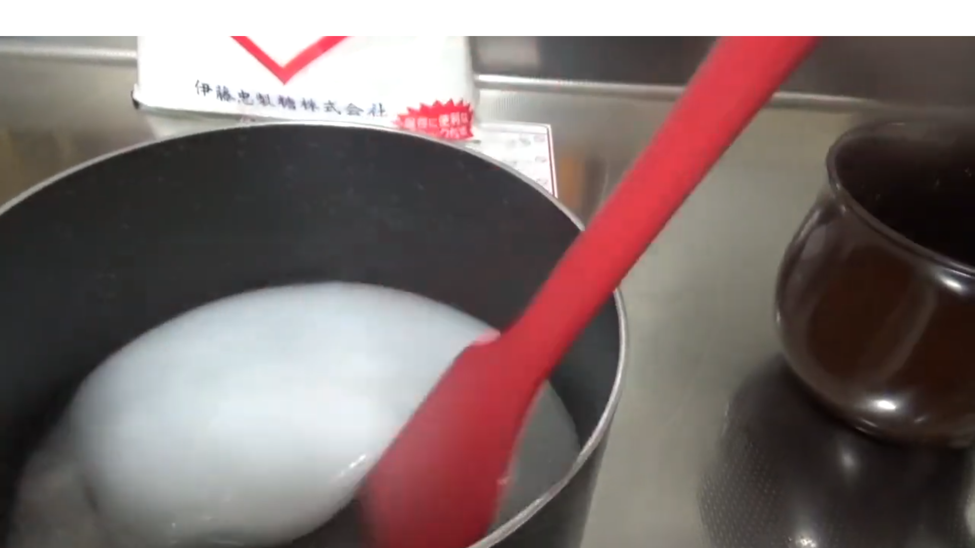 • Em uma panela adicione 100ml de água, 1 xícara de 200ml de açúcar e misture bem.
