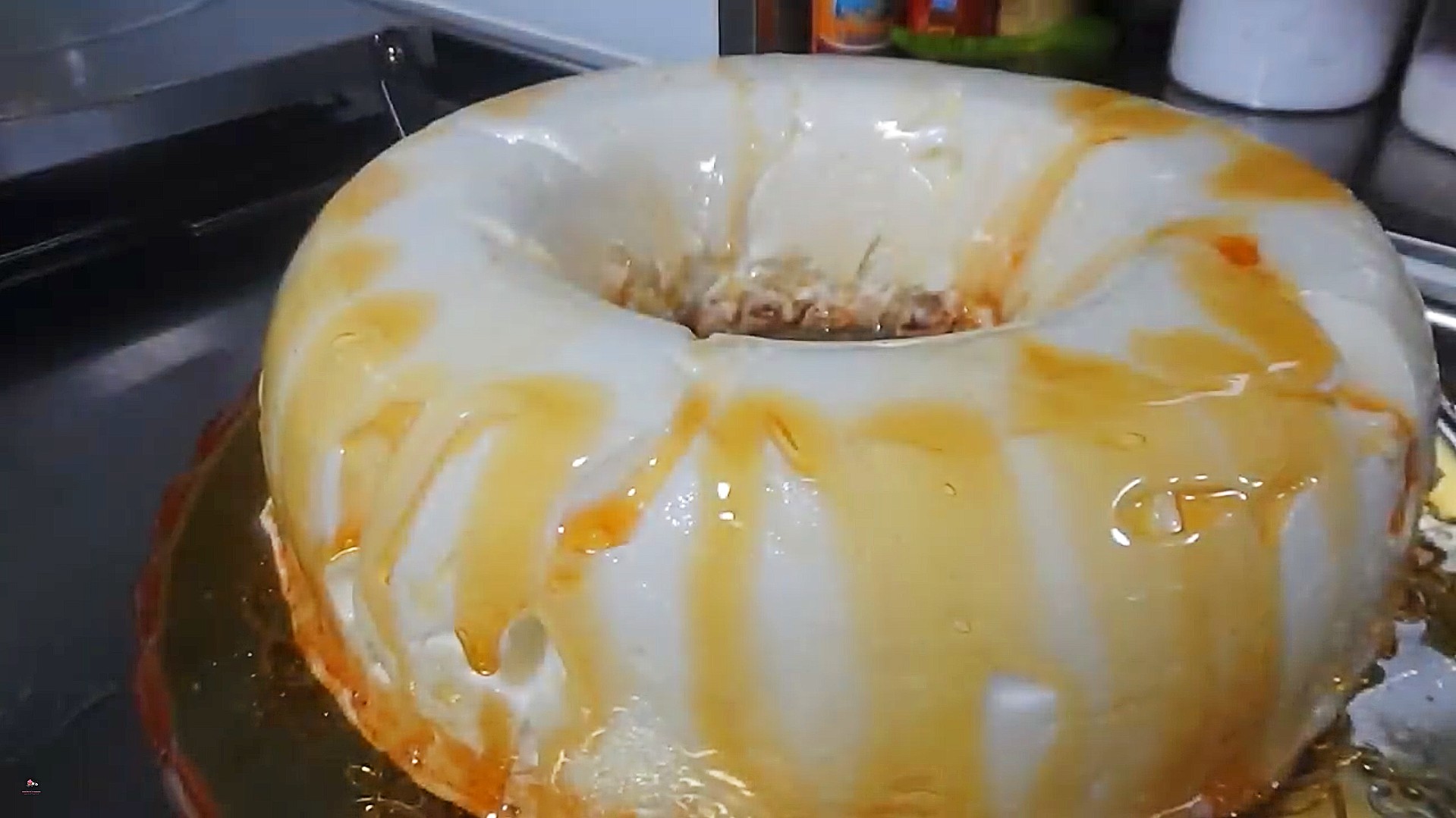 • Despeje a calda em uma forma, espalhe bem e reserve.